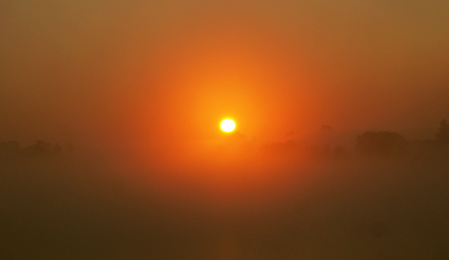 Rudeninė saulė rūke