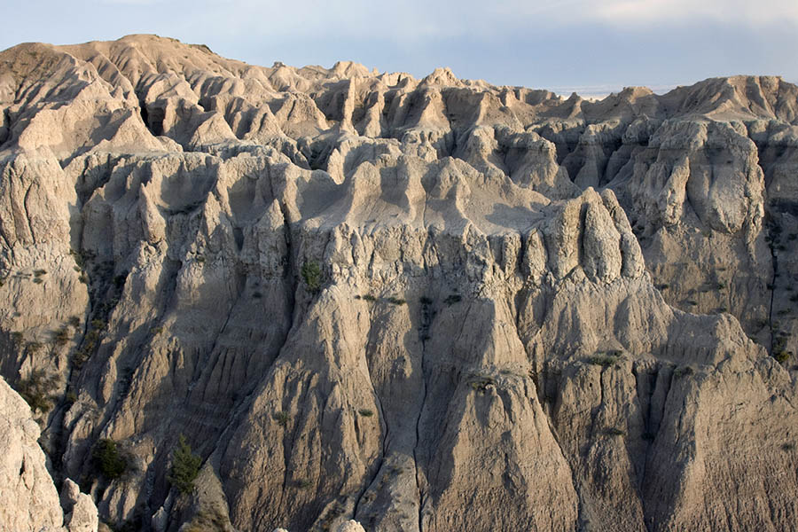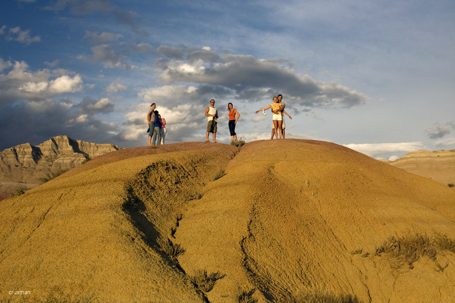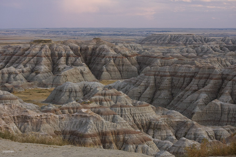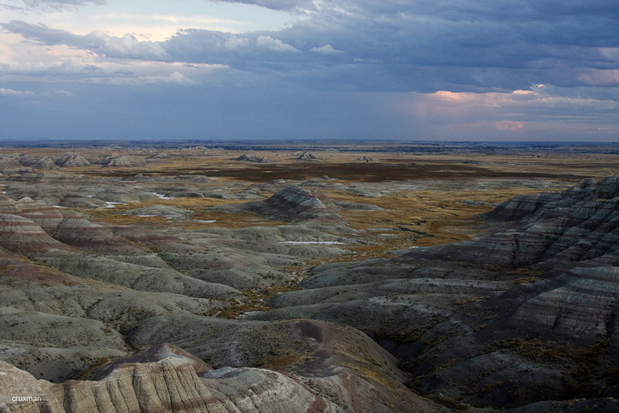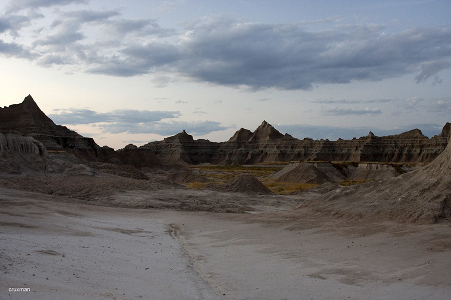 Šios nederlingos žemės Pietų Dakotoje, tai ne kas kita, kaip senovinės jūros dugnas, pilnas moreninių liekanų ir grunto. Uolos švytėjo visomis iki tol jau matytomis spalvomis, bet po ilgesnio laiko tarpo jau vėl spėjome pasiilgti ir hoodoos ir Didžiojo Kanjono, ir Braiso bei Arkų ar Ziono kolorito. Ispanai šias vietas vadino tiesiog pragaištinga žeme, prancūzai – sunkiai pereinamomis žemėmis, o lakotai – nederlinga žeme.