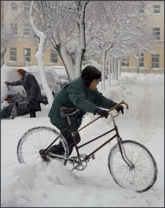 Apie žiemą ir drąsuolius, trečioj fotkėj, gal dviratis vietoj kriukučio?