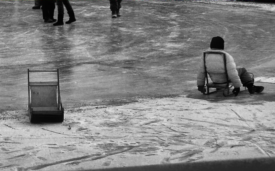 Džiugu, kad yra vaikų, besilinksminančių ant ledo su senoviškomis rogėmis :)