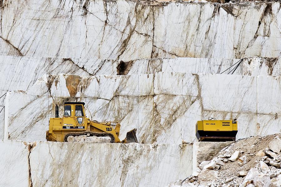 Marmuro kasyklėlė Graikijoje, Thasos saloje. Tolimesniam apdirbimui gabaliukai po 10-20 tonų transportuojami į žemyną.