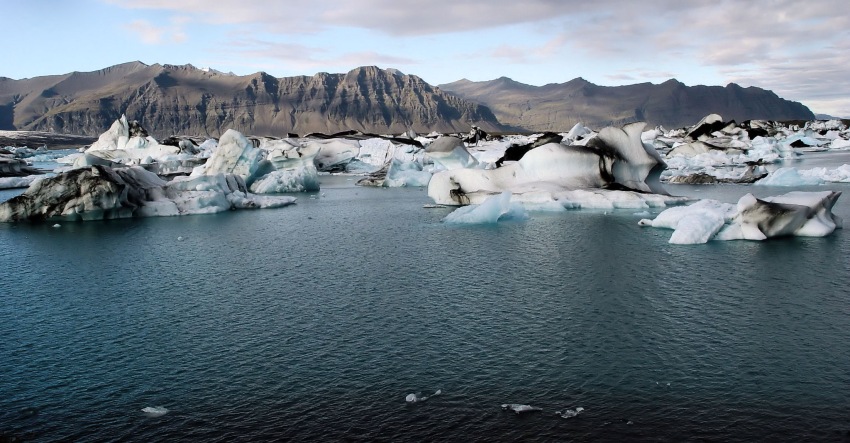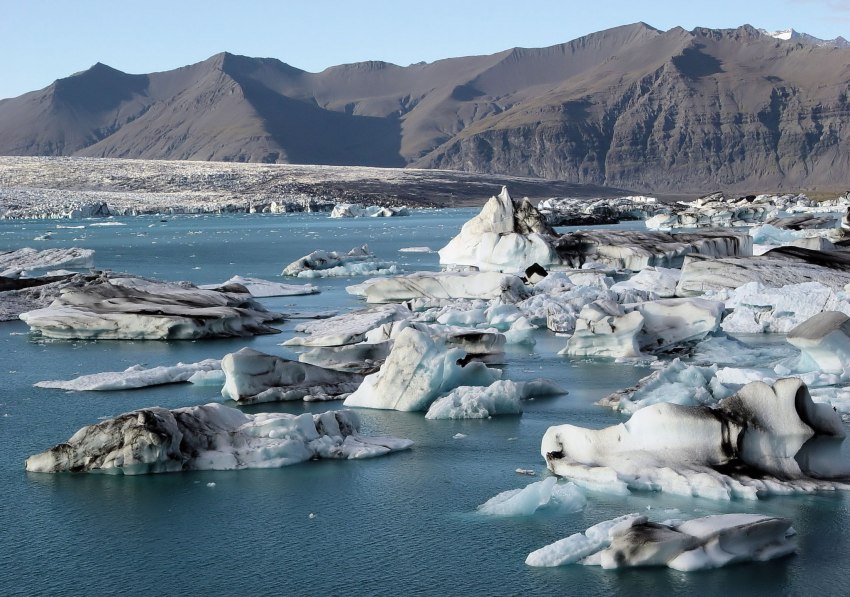 Jokulsarlon įlanka (64:03‘š.pl., 16:13‘ v.ilg.) arba “čia gimsta ledynai”