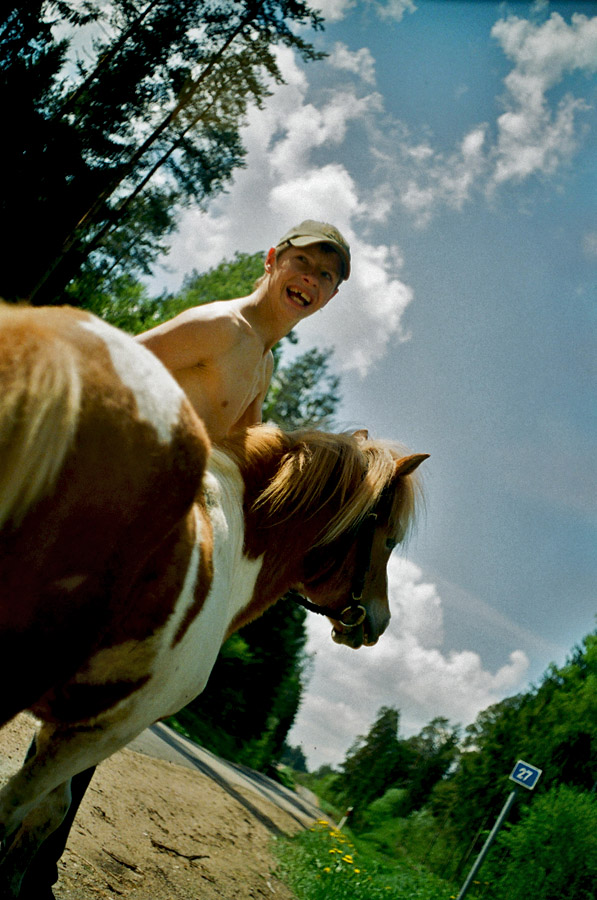 27-to kilometro draugas - įdomus žmogus. jo diena prasideda visai kitaip nei, pavyzdžiui, mano. vos nubudęs jis skuba pasirūpinti savo ištikimu draugu ir bendrakeleiviu. po ankstyvų rytinių darbų jie kartu pradeda kelionę. vienas kitam visaip padėdami jie skuba "linksminti" iš miesto atvažiuojančių vaikų. neatrodo, kad tos linksmybės labai patiktų keliautojams. tačiau taip dabar ištikimas draugas ponis atsidėkoja pasirūpindamas mano 27-to kilometro draugu. kiekvieną giedrą, ar nelabai, dieną jie nukeliauja po 20km pirmyn ir atgal. taip kartu jau ilgai keliauja, prižiūri vienas kitą, tiesia pagalbos ranką (koją). svajoja, kad jau greitai jiems nebereikės keliauti. galės kiauras dienas džiaugtis vasara savo gimtuose žolynuose. įdomus duetas. svarbiausia, kad neišskiriamas.