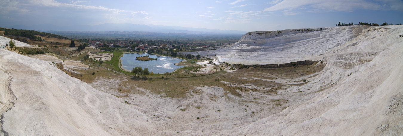 Mineralinis vanduo, turtingas druskų teka kalnų šlaitais žemyn, apnešdamas uolas kalkių sluoksniu. Laikui bėgant susiformavo kalkių terasos, baseinai, sienos. Pamukalės vandenyse senovėje maudydavosi graikų ir romėnų didikai, imperatoriai. Tai vienas svarbausių Turkijos turistinių objektų, 1988 m. įtrauktas į UNESCO pasaulio paveldo sąrašą.