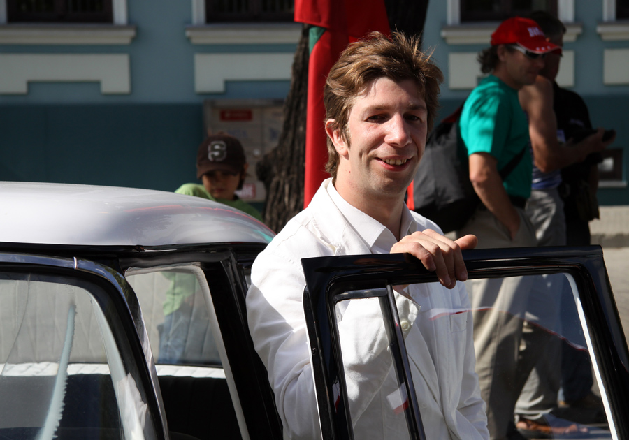 čia greičiausiai- Jūros šventė? Aš iš praeitų metų šventės turiu ponaitį Nedzinską tokioj pat pozoj, šalia automobilio:D