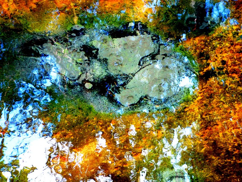 Šaltinis. Vandens atspindžiai įvairiais metų laikais