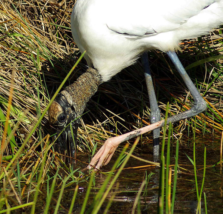 Amerikinis gandras (Mycteria americana, angl. wood stork). Žvejoja drumstame vandenyje panardinęs pražiotą snapą. Dažnai kojomis minkydamas dumblą, stengiasi išbaidyti grobį. Vos tik žuvis įplaukia snapan šis užveriamas. Tam tereikia 0,025 sek., arba per 1 sek. sureaguota būtų iki 400 kartų - tai greičiausias žinomas refleksas stuburinių pasaulyje.